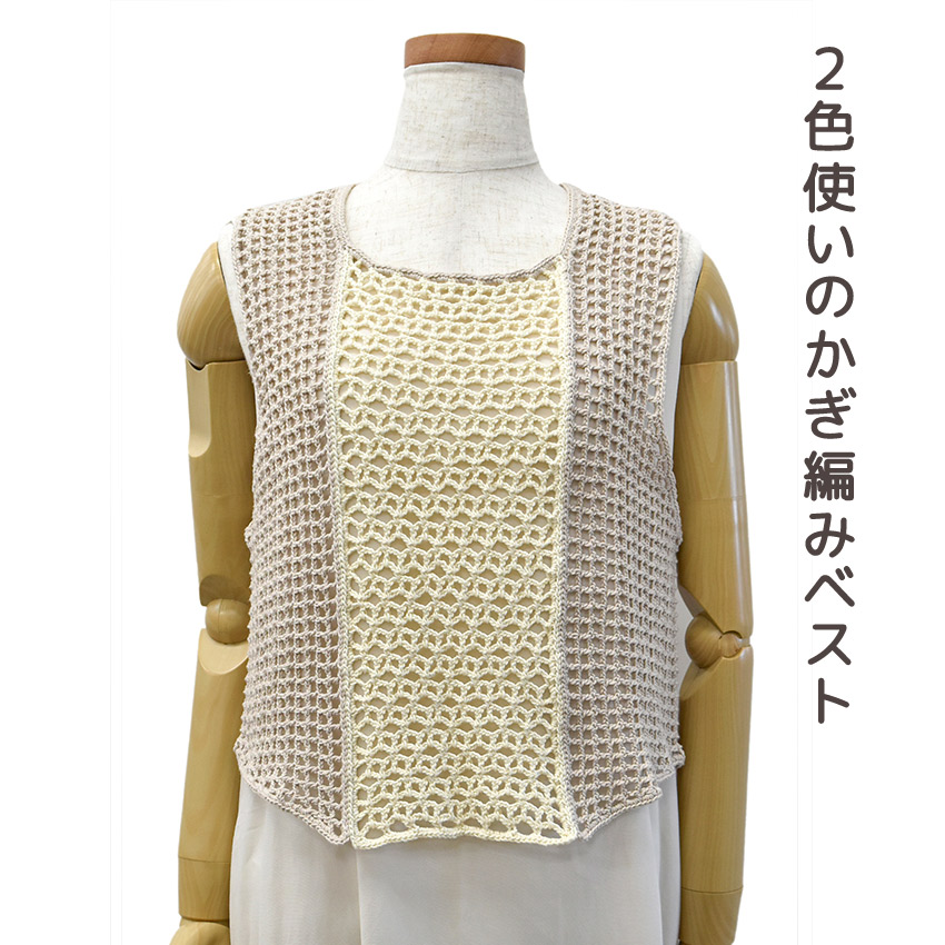 【コットンラスタまたはコットンラスタプリントと同時購入で1円】ニットレシピ 2色使いのかぎ編みベスト 2501-3105|編み図