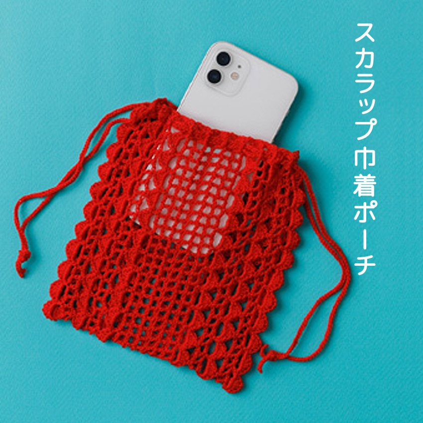 【エミーグランデと同時購入で1円】ニットレシピ スカラップ巾着ポーチ 25-7|編み図 作り図 手編み オリムパス