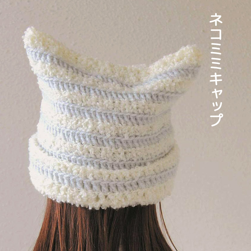 【ハマナカボニーまたはボニーループと同時購入で1円】ニットレシピ ネコミミキャップ AFC-12|編み図 作り図