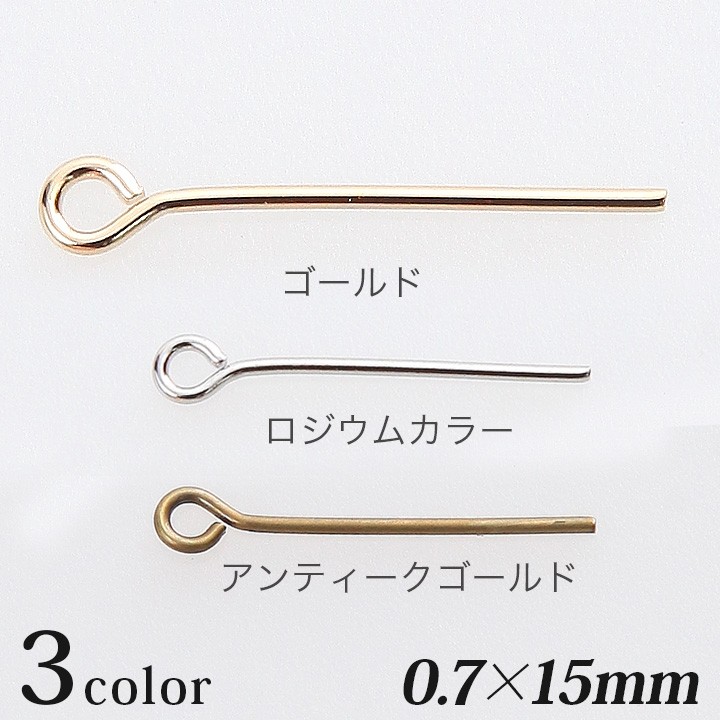 ピンにパーツを通し先端を丸め、パーツとパーツをつなげるのに使用します。ピンを丸める部分は7〜8mm必要ですので、パーツのサイズに合わせて長さをお選びください。