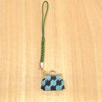 ビーズステッチで作る小さながまぐちモチーフの根付けに、シックな緑と黒の市松柄と可愛らしい紅と白の市松柄が仲間入り。
