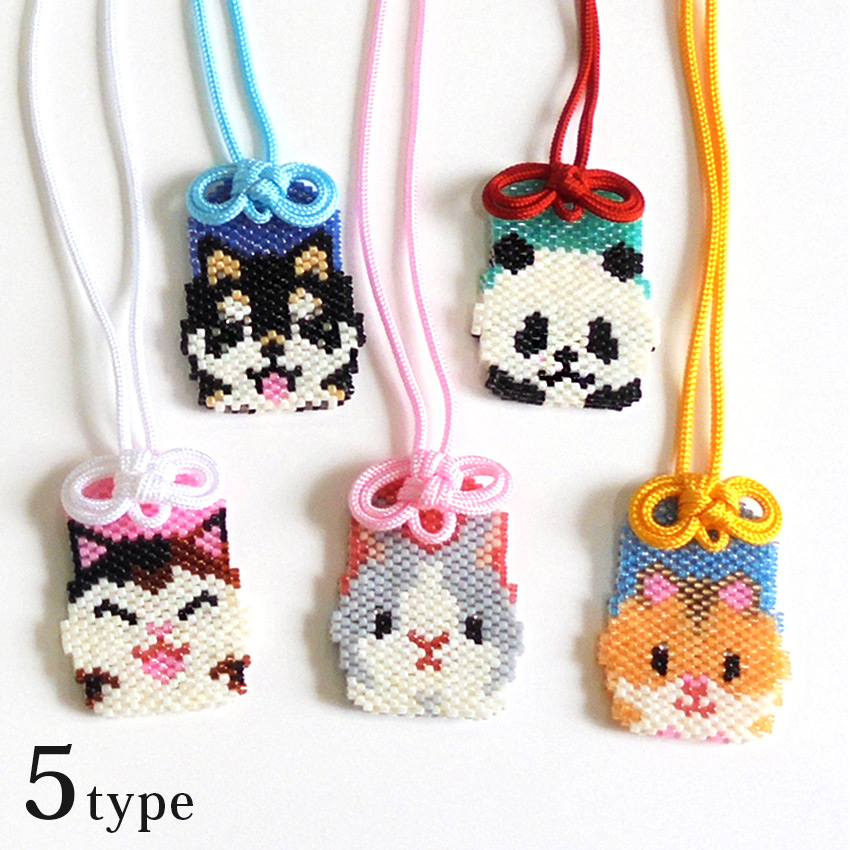 ビーズキット 京・どうぶつお守り | ビーズ キット ステッチ ホビックス HOBBIX ハチワレ うさぎ 三毛猫 柴犬 パンダ ハムスター