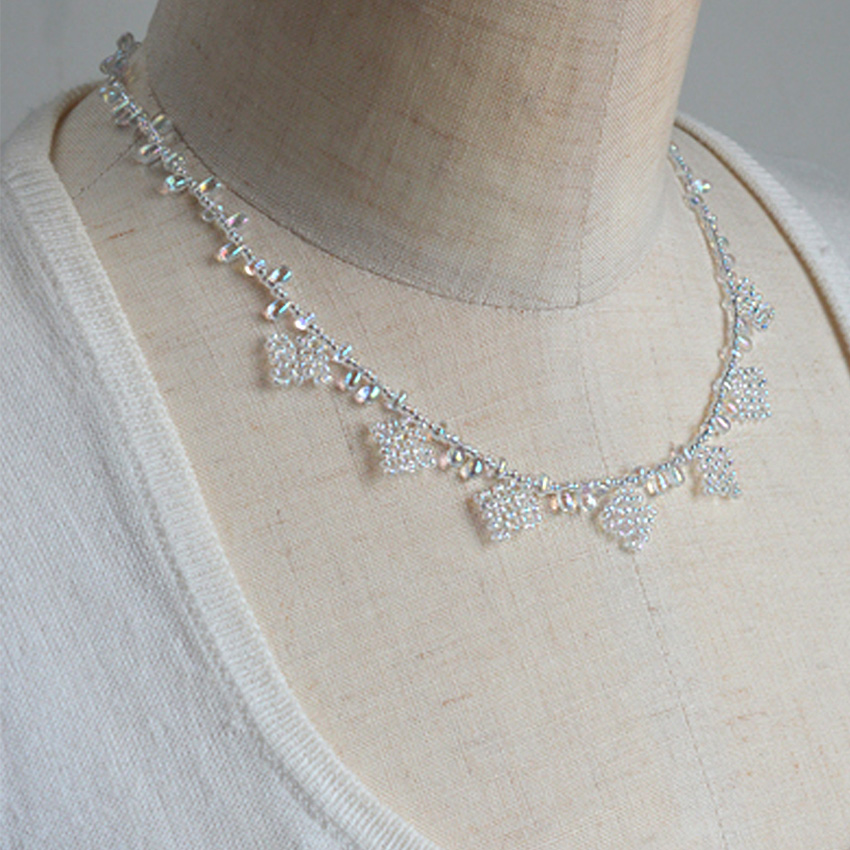 レーシーなパーツは軽やかで、キラキラと輝く透明なビーズでお顔周りを明るくしてくれるネックレスです。