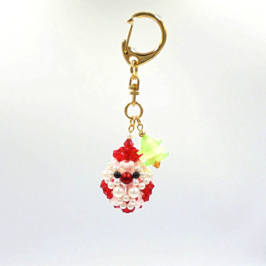 アクリルビーズとパールで作るサンタクロースのキーホルダーです。