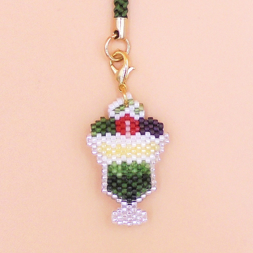 京・レトロ喫茶根付け 抹茶パフェ | ビーズキット 根付け 喫茶 レトロ ストラップ