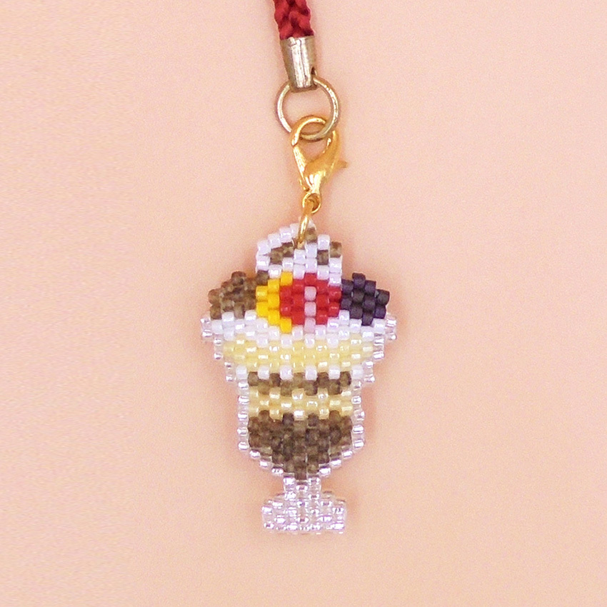 京・レトロ喫茶根付け ほうじ茶パフェ | ビーズキット 根付け 喫茶 レトロ ストラップ