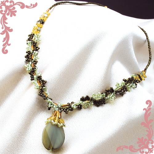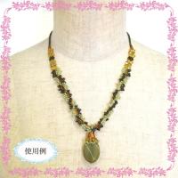 ネックレスを使用する際、下側パーツ(デージーステッチ)部分を少しねじって使用するとまた、違ったビーズの色味と形が楽しめます。