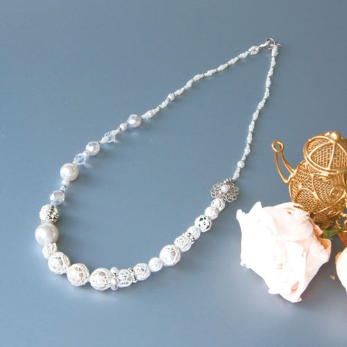 ビーズ キット ネックレス かんたん・使えるベーシックアクセサリー ナチュラルホワイトのネックレス 母の日