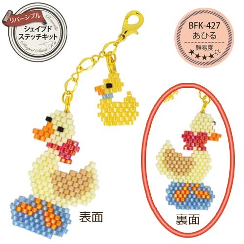 ビーズ キット ストラップ・チャーム リバーシブルシェイプドステッチキット あひる BFK427