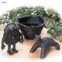作品をそのまま焼けばカーボンの働きにより黒く仕上がり、アルミホイルに包んで焼けば赤くハニワ色になります。