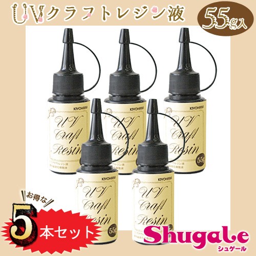 UVクラフト レジン液 55g 5本 セット|UVレジン|紫外線硬化樹脂液|UVクラフト液|UVジェル|透明樹脂|お買得|