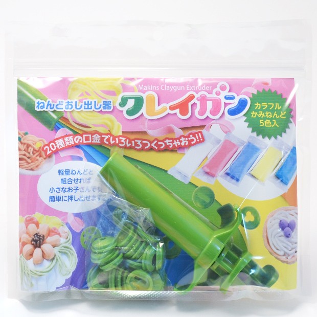 粘土 押し型・抜き型 ねんどおし出し器 クレイガンセット カラフルかみねんど5色付