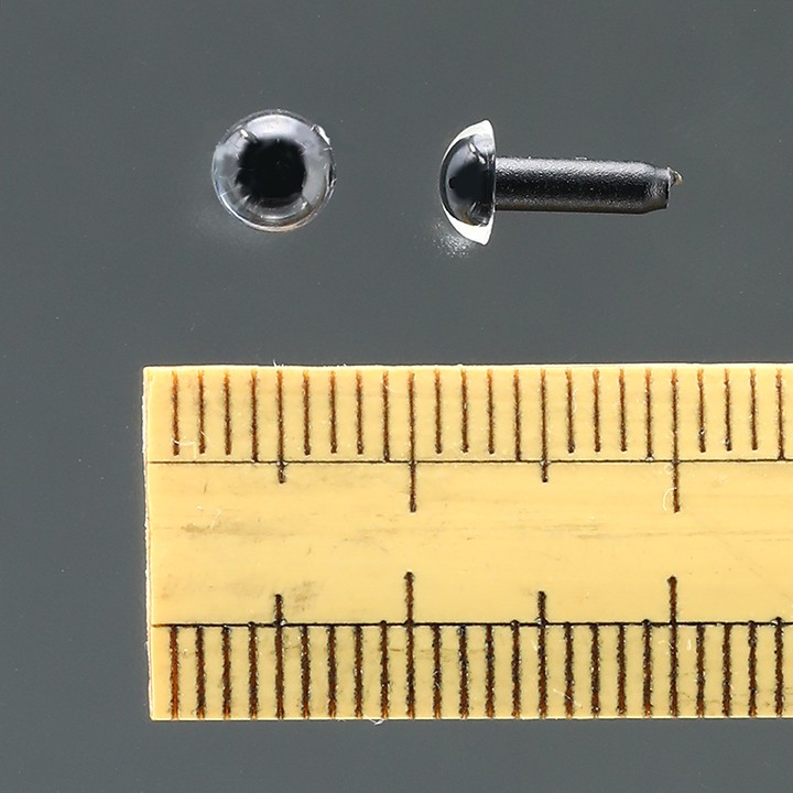 黒目のまわりの部分がクリア(透明)のプラスチック(ポリスチレン)製の人形用目玉パーツ(さし目)です。