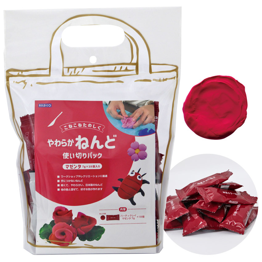 やわらかねんど使い切りパック マゼンタ 7g×18個 | 粘土 ねんど 使い切り 少量パック 小分け 講習会 材料 便利 シェア 教室 レクリエーション 施設 脳トレ
