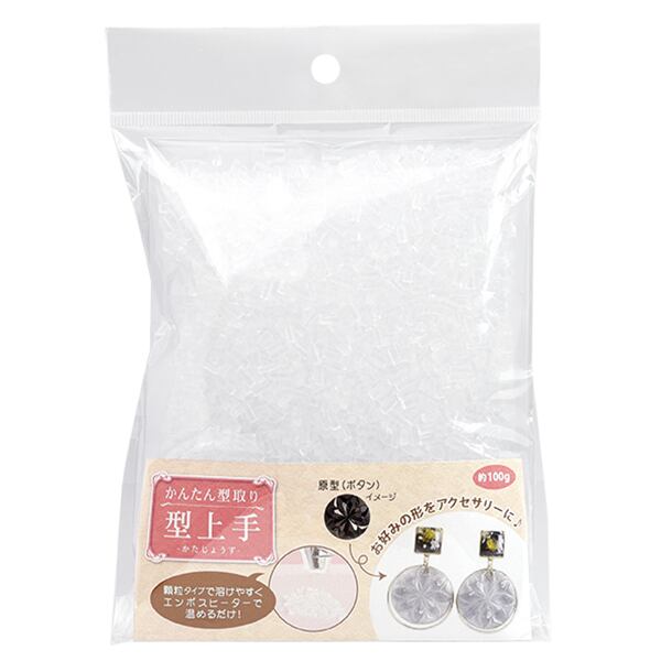 「型上手」は顆粒タイプでお湯やエンボスヒーターで温めると柔らかくなります。