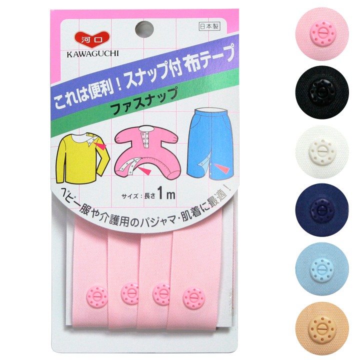 テープにスナップが付いた”スナップ付き布テープ”です。