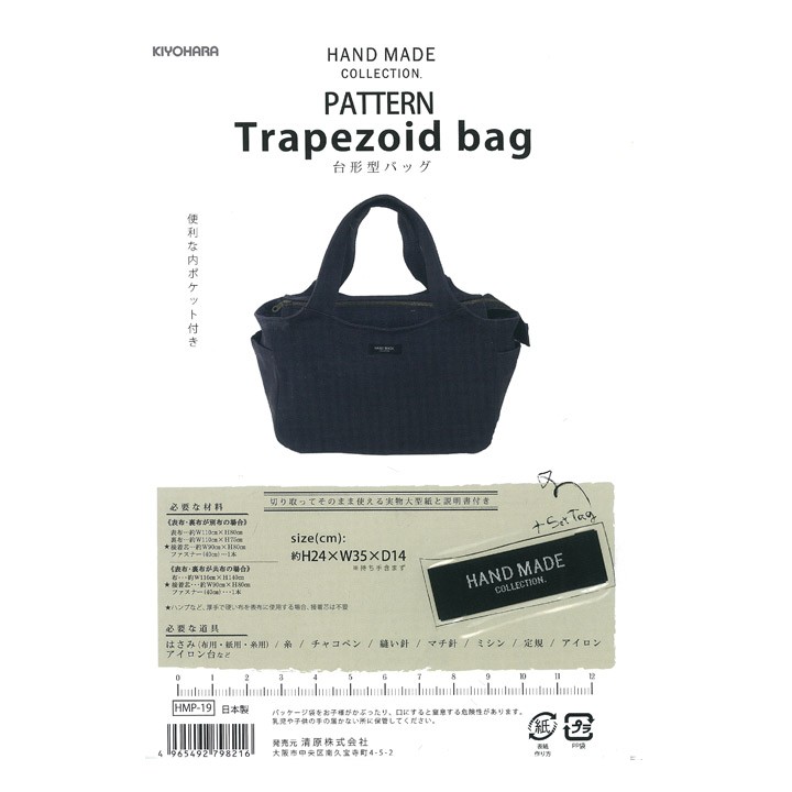【 サイズ(約) 】 パッケージ … 15×21.5cm、出来上がりサイズ …24×35×マチ14cm(持ち手含まず)