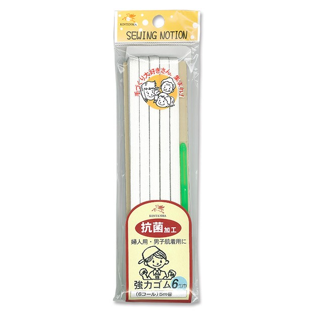 金天馬 強力ゴム 抗菌加工 巾6mm×5m巻 ひも通し付き|手芸 織ゴム 替えゴム ライクラゴム ゴムベルト 幅広 平ゴム