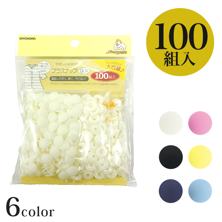 プラスナップ 9mm 大容量 100組入|ソーイング 副資材 プラスナップ プラスナップボタン スナップ プラスチック ボタン 簡単 金属アレルギー