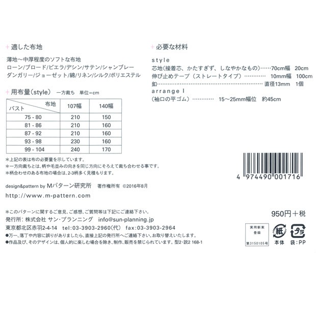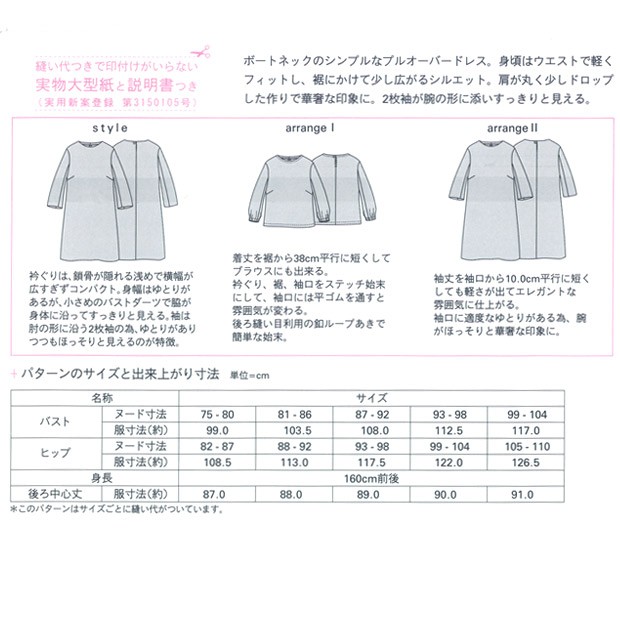 生地 型紙 mパターン研究所 ボートネックドレス M171|簡単|かんたん|裁縫|手芸|手作り|mパターン|
