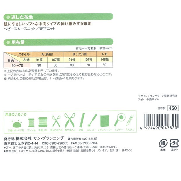 生地 型紙 フィットパターン サン ベビーコンビ肌着 4782|赤ちゃん|簡単|裁縫|手芸|手作り|ソーイング|