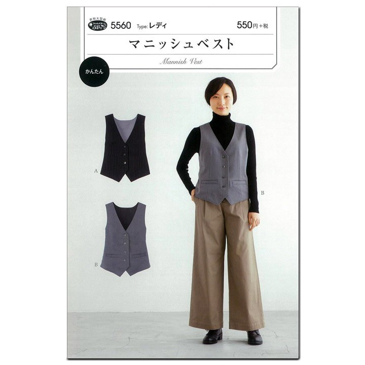 フィットパターン サン マニッシュベスト 5560 | レディース ウエア チョッキ 重ね着 ポケット付き 実物大型紙 サンプランニング
