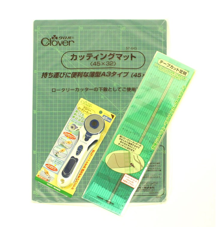 つまみ細工の布カットに便利な3点セット クロバーロータリーカッター、カッティングマット、テープカット定規セット|手芸道具 ソーイング道具 左利き