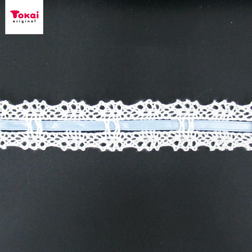 リボン通しトーションレース R-0009 WH×SAX (50cm単位) | 切売り 切り売り 衣装 飾り リメイク ドレス ウエディング 舞台衣装 ハンドメイド 手芸 材料