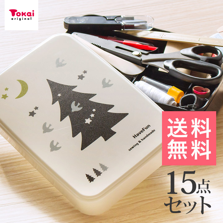 裁縫セット 限定柄 夜の森15点セット | 小学生 女子 男子 男女兼用 ソーイングセット 大人 北欧調 ケース ボックスタイプ オリジナル トーカイ