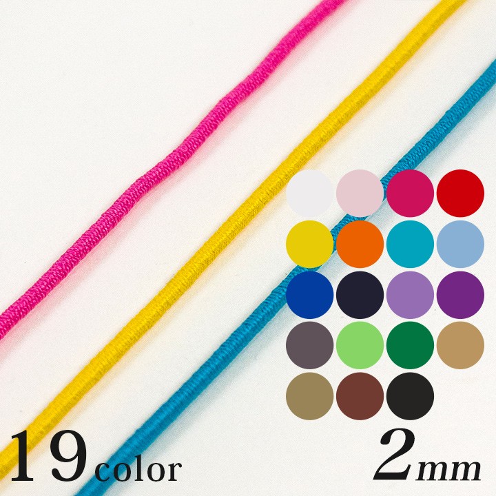 カラーゴム 丸ゴムM 直径2mm 全19色(50cm単位)| 丸ゴム ヘアゴム ヘアアクセサリー 切り売り 材料 ラッピング マスク関連