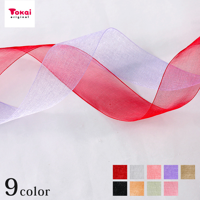 程よい透け感とハリが特徴のオーガンジーのリボン。さまざまな手芸・クラフトの材料としてお使いいただけます。