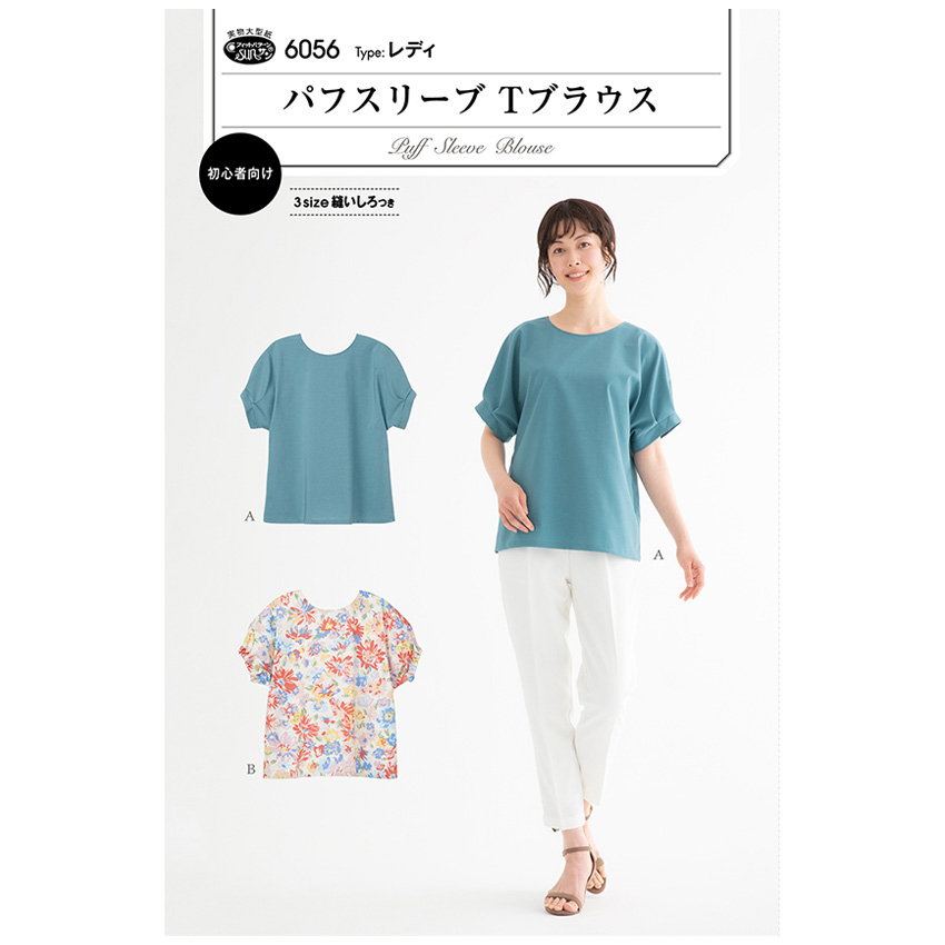 型紙 フィットパターン パフスリーブ Tブラウス 6056 | パターン 型紙 手作り ハンドメイド ソーイング 洋裁 簡単 女性 レディース