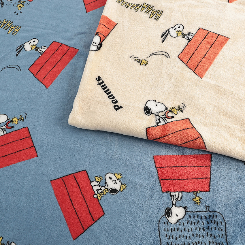 ピーナッツ ドッグハウス柄 マイクロフランネル 75×100cm カットクロス|生地 布 布地 はぎれ カット布 防寒 キャラクター ボア生地 ふわふわ 両面起毛 毛布