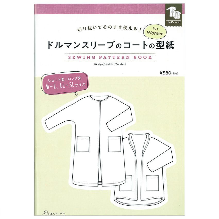 ドルマンスリーブのコートの型紙 | 図書 本 書籍 ソーイング 月居良子 ウエア レディース コート ロングコート ショートコート