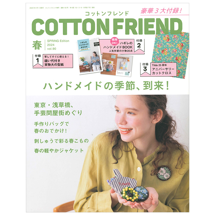 コットンフレンド2024年春号Vol.90 | ブティック社 図書 本 書籍 ソーイング バッグ 袋物 小物 ポーチ ジャケット 春色ブローチ 型紙付き 小冊子付き