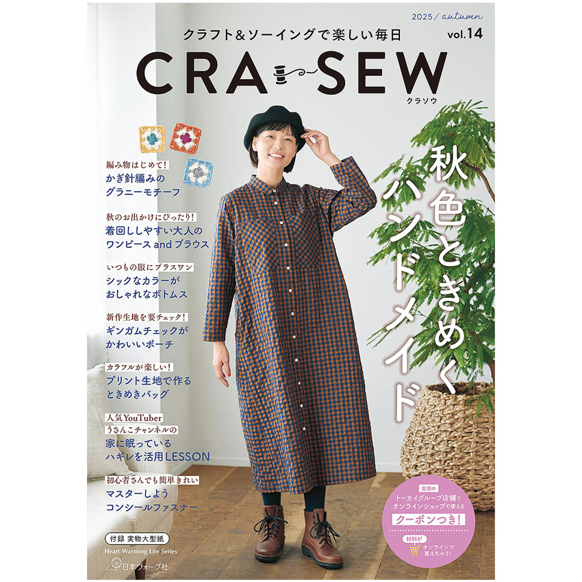 CRA-SEW vol.14 | 図書 本 書籍 ソーイング ウエア デイリーウエア クラソウ 大人かわいいワンピース かぎ針編み グラニーモチーフ 秋