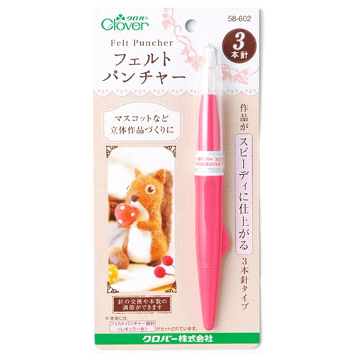 持ちやすいペン型の3本針タイプです。用途に合わせて針の数がチェンジできるのでマスコット、立体作品がスピーディに仕上がります。
