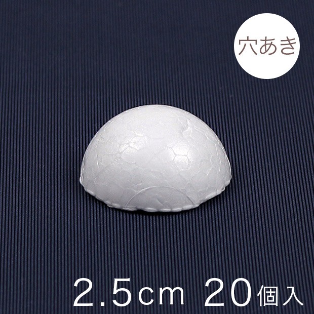 半球スチボール 2.5cm 穴あき 20ヶ入り|スチロール素材 半くす 発泡スチロール 発泡球 玉 球 丸 芯 芯材 土台 スチロール球