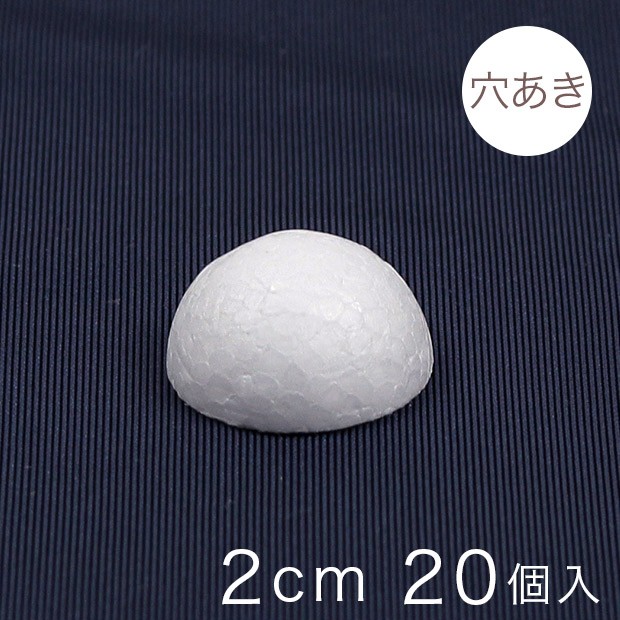 半球スチボール 2cm 穴あき 20ヶ入り|スチロール素材 発泡スチロール 発泡球 玉 球 丸 芯 芯材 土台 スチロール球