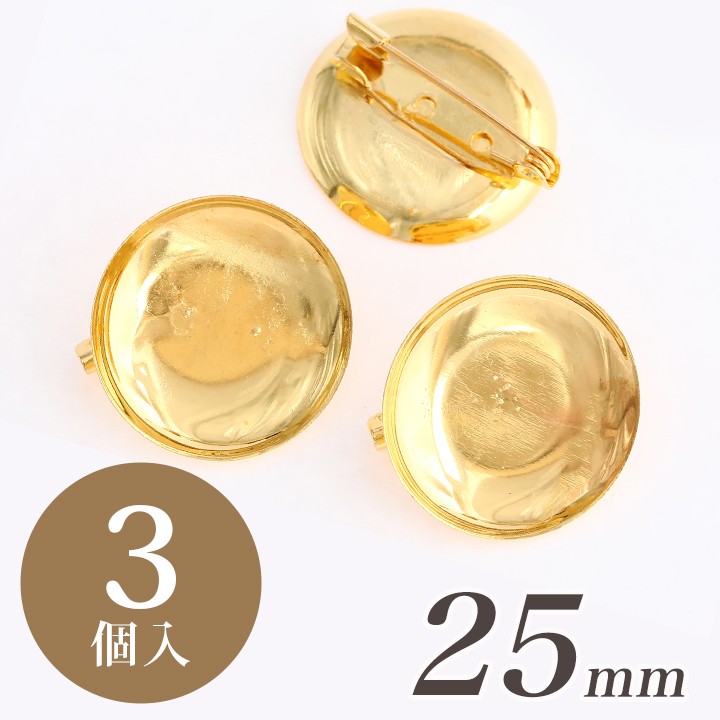 つまみ細工用 ブローチ台 25mm ゴールド 3個入 TP-43 | ブローチパーツ 台付ブローチ金具 台座