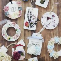 通し穴付きなので、作品はリボンや麻ひもなどを通すことができます。