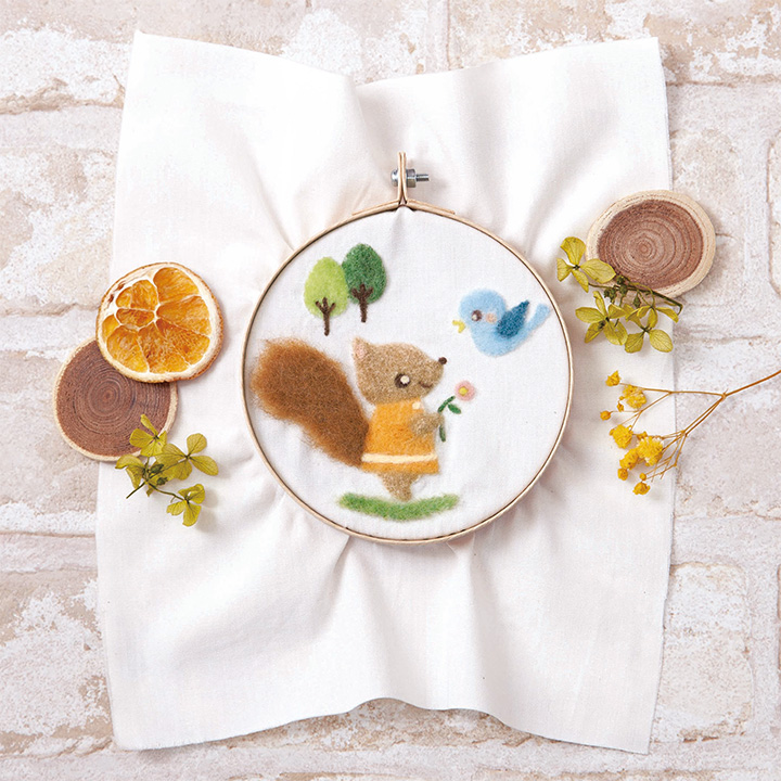 ハマナカ 手作りフレームに飾る羊毛のふんわり刺しゅう りすと小鳥 H441-566 チビロビン | フェルト羊毛刺繍キット エコクラフト枠 リス ことり