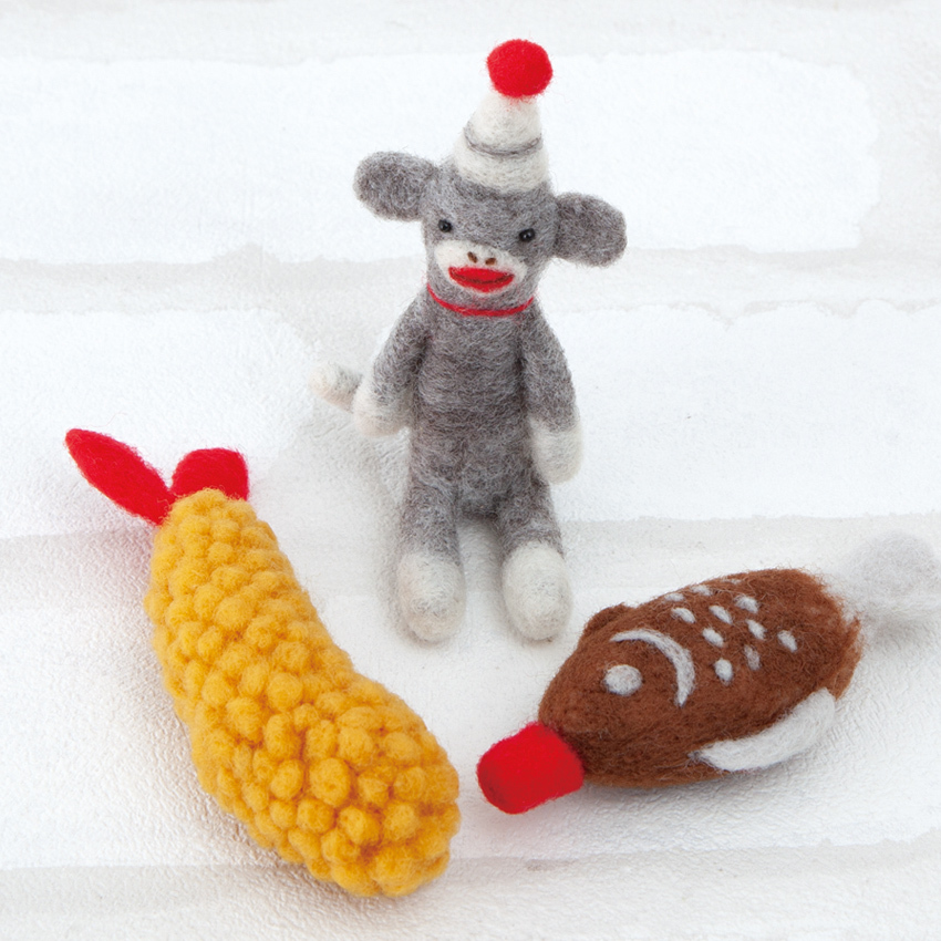 ハマナカ アクレーヌでつくるおかしなもの ソックモンキー・エビフライ・醤油さし H441-585/coma | アクレーヌキット ニードルフェルト フェルティング