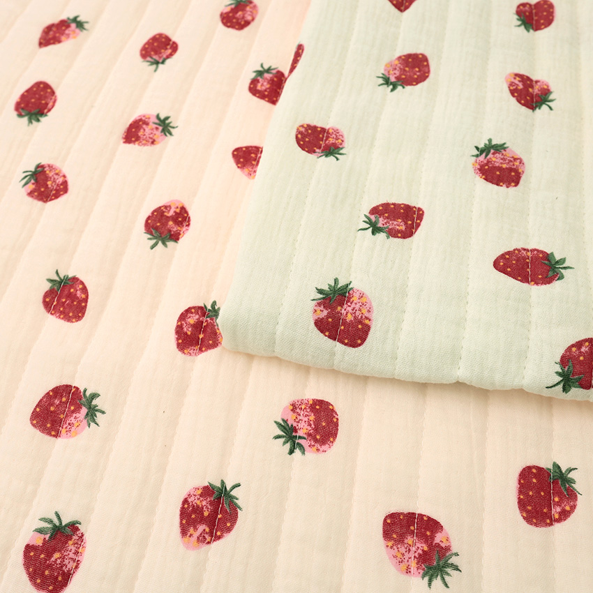 ふわふわコットン イチゴ ダブルガーゼキルト 50cm単位|切売り 切り売り 生地 布 布地 キルト生地 キルティング キルティング生地 Wガーゼ しわ感 シワ感