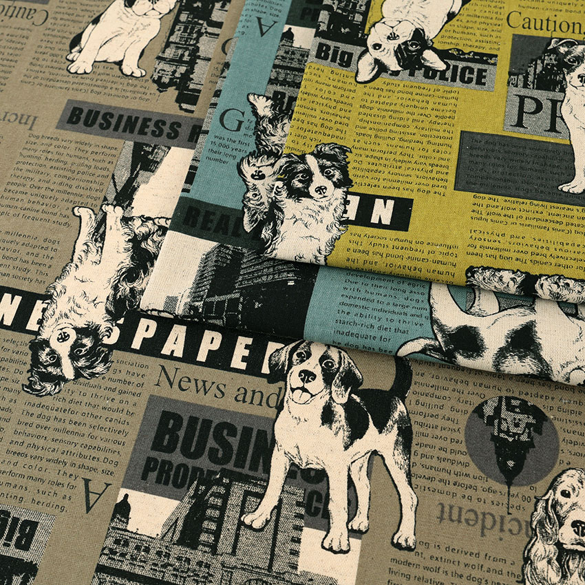 英字と犬柄 綿麻キャンバス 50cm単位|切売り 切り売り 生地 布 布地 犬 いぬ イヌ ドッグ ワンちゃん わんこ ワンコ コットンリネン