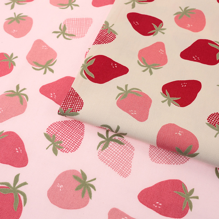 LE DEPART いちご柄 オックス 50cm単位 | 切売り 切り売り 生地 布 布地 コットン100% かわいい 苺 イチゴ