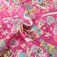 プリキュアたちのキュートで躍動感あふれるイラストが全面にプリントされたキルト生地。