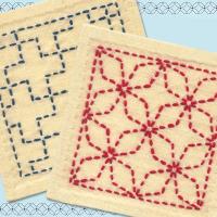 はじめての方でも簡単に刺し子が楽しめるスターターキットです。このセットでコースターが2枚作れます。
