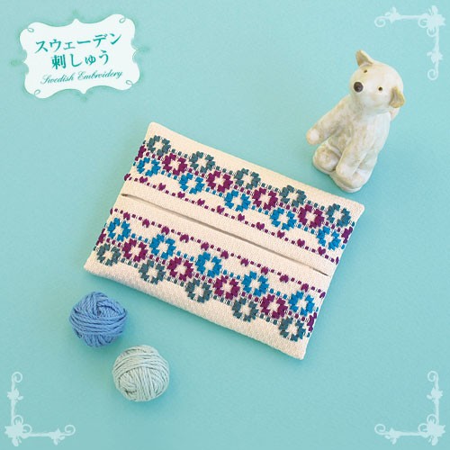 刺繍 キット オリムパス スウェーデン刺しゅう ティッシュケース 紫