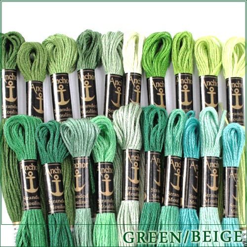 刺繍 刺しゅう糸 Anchor 25番 グリーン・ベージュ系 1